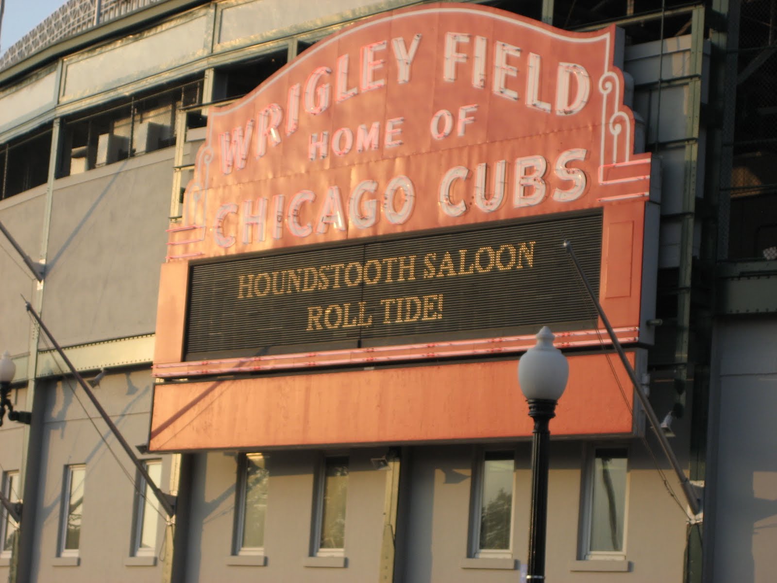 After the game, we decided to see what Wrigleyville had to offer for night life. Cubbie Bear was our first stop. If you ever want to see a bunch of white people trying to dance, this is your place. Once that got old we stepped back on the street in front of Wrigley Field. I look up and what do I see? Fate. " Come to the Houndstooth Saloon, Roll Tide" was flashing on the screen outside the stadium.