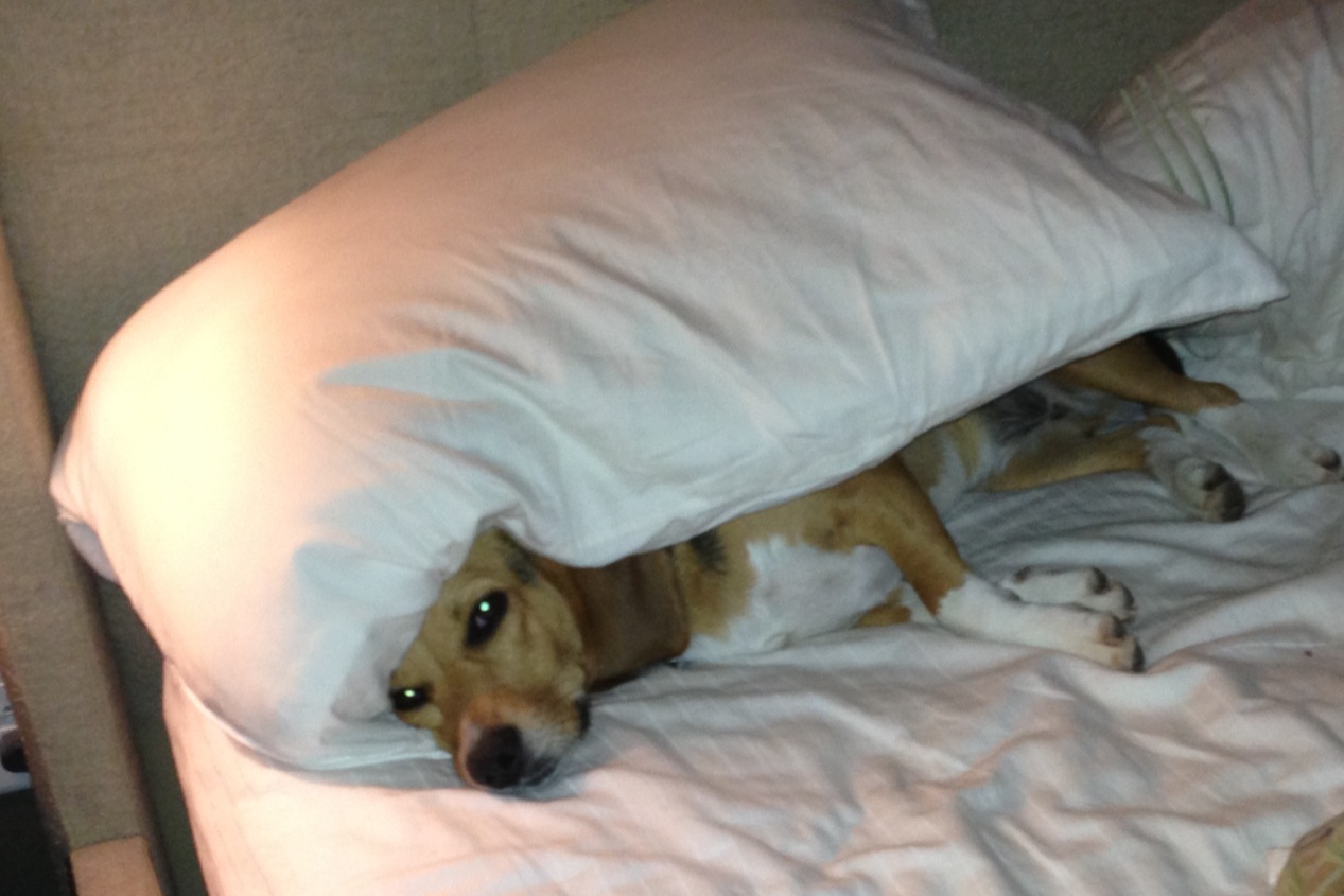 Tuffy loves sleeping under pillows