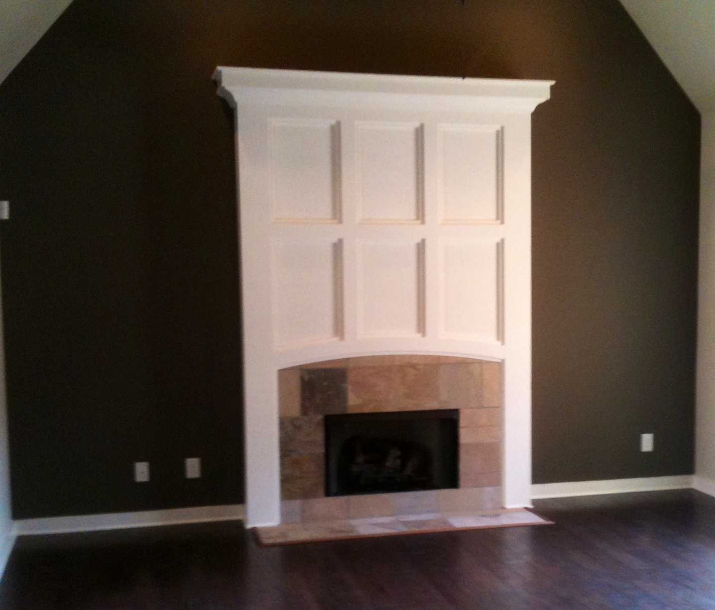 Darkly painted again. I love how the white pops against this color, and not everything jumps out at you all at once. The books take a back seat, but when you look closely the red accent color really makes a statement.